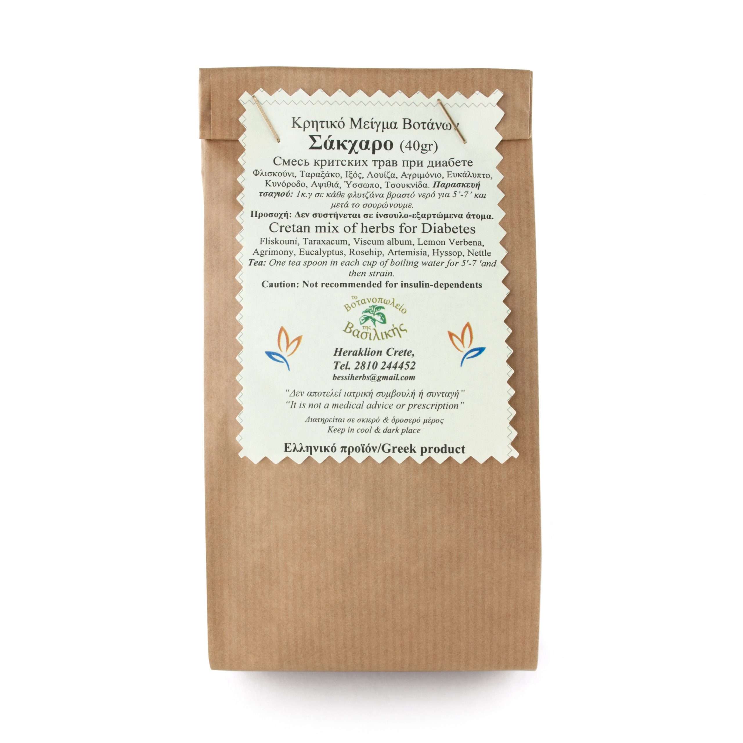 Contains fliskouni (Cretan wild mint), taraxacum, viscum album, lemon verbena, agrimony, eucalyptus, rosehip, artemisia, hyssop, nettle.