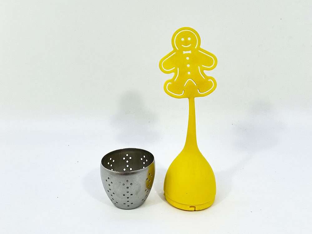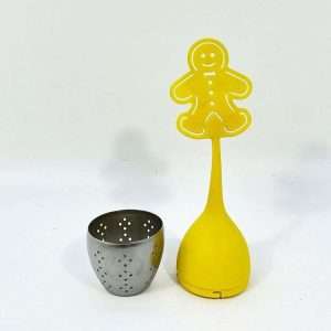 Ανοξείδωτο ατομικό σουρωτήρι μπάλα, με στήριγμα ανθρωπάκι, για την παρασκευή μιας κούπας τσαγιού.