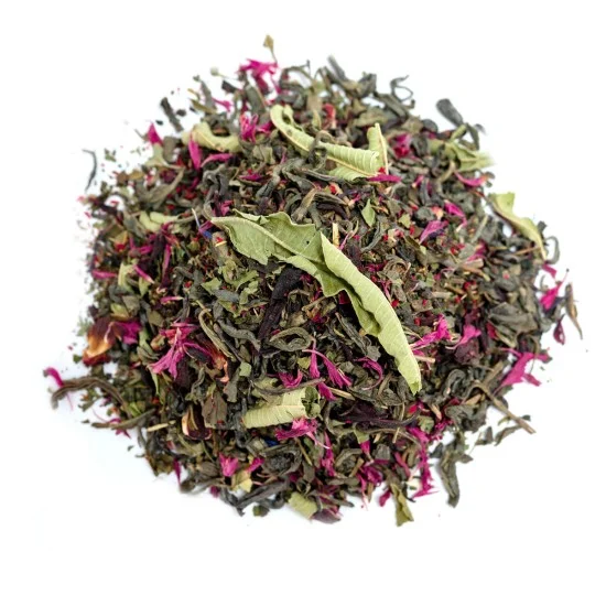Συνδυάζει πράσινο τσάι Κίνας πλούσιο σε αντιοξειδωτικά με λουίζα και τσουκνίδα για αποτοξίνωση και διούρηση. Ο ιβίσκος και το ρόδι προσθέτουν φρουτώδη δροσιά και βιταμίνη C, ενώ ο κόκκινος κενταύριος βοηθά στην πέψη και στη φυσική ισορροπία του οργανισμού.