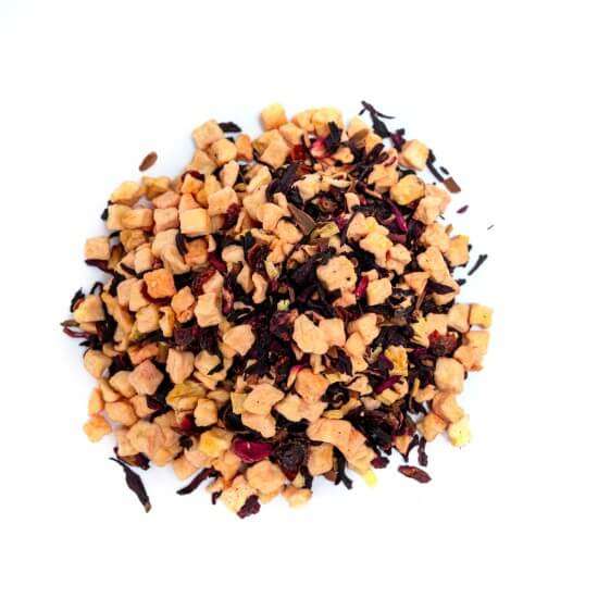 με μήλο, αγριοτριαντάφυλλο, κανέλα, γλυκόριζα και ιβίσκο.